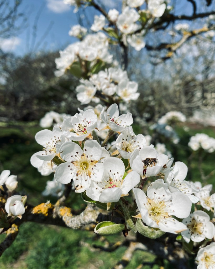 The crisp white simplicity of pear tree blossom is hard to beat. No sign of a pink tinge like in their soon to flower cousin the apple tree. In that regard Pears have a fresh coolness in their blossom that apples find hard to achieve.