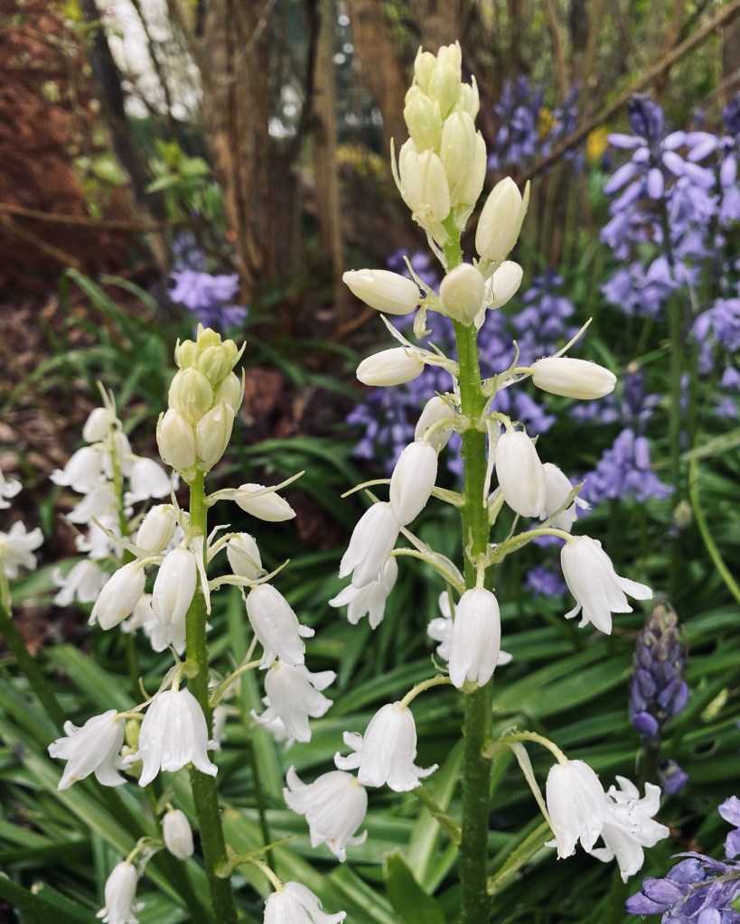 Heavier set than the native Hyacinthoides non-scripta the Spanish invader Hyacinthoides hispanica can cross with the native and produce viable offspring. Natural colour mutations of white and pink are sometimes seen in the Spanish which is by far the more common garden occupant.