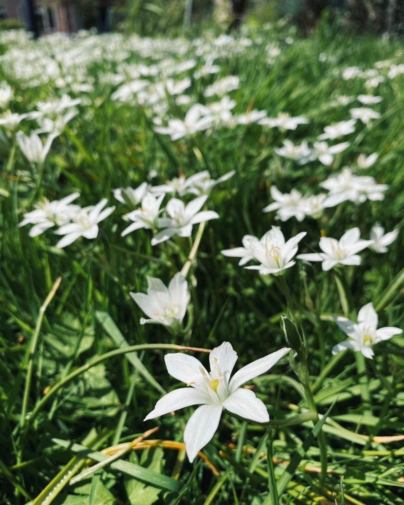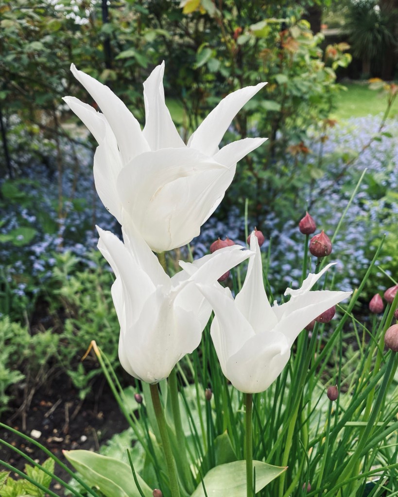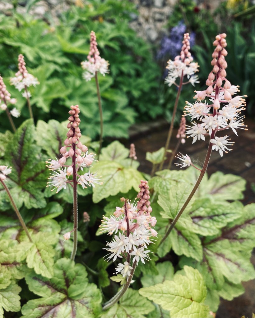 Heucherella ‘Kimono’ (Heuchera x Tiarella) as a pot plant. Naturalised in grass; Star of Bethlehem (Ornithogalum umbellatum), and lastly celebrating Tulips.