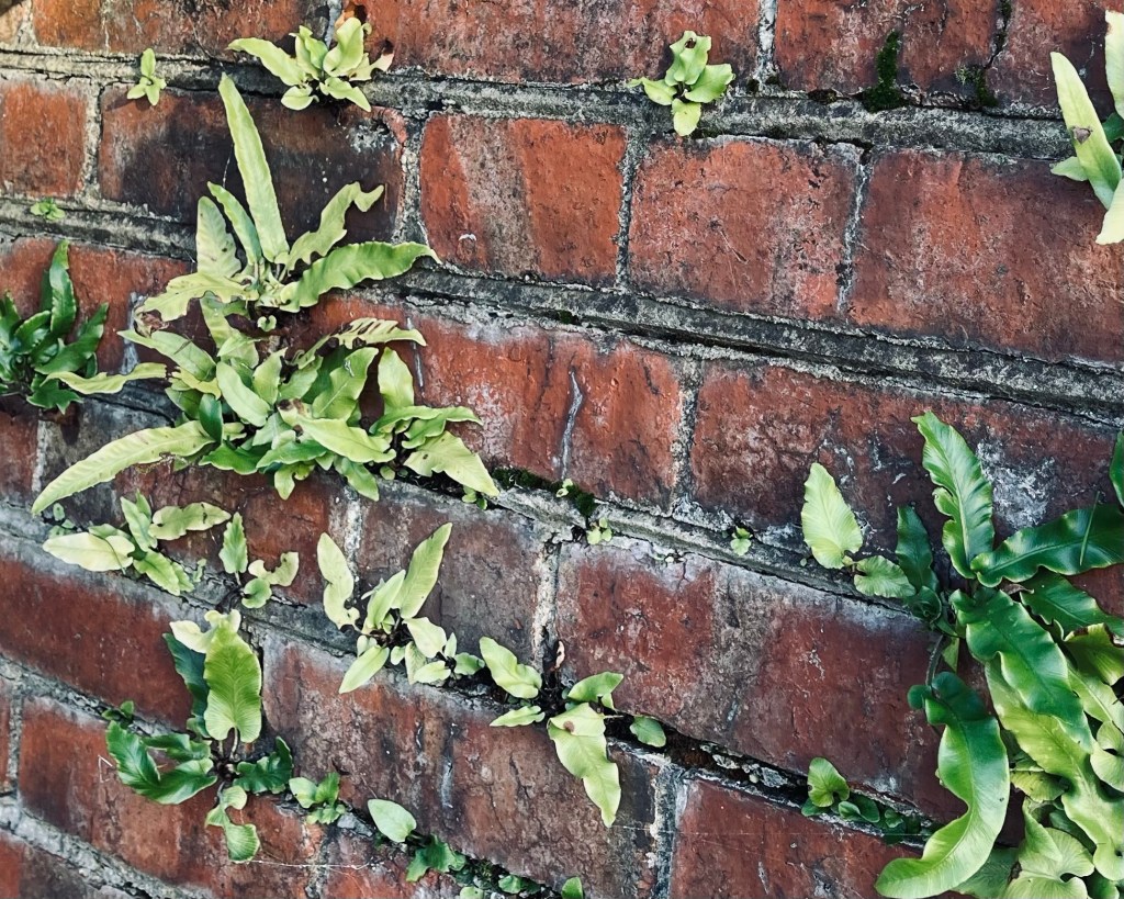 It would be surprising if any garden authority recommended establishing a colony of Hart’s tongue fern in the mortar lines of a vertical red brick wall. It’s worth taking note of where plants place themselves especially if it seems to defy logic or understanding. There’s a lesson to be learnt in such occurrences and greater understanding follows.