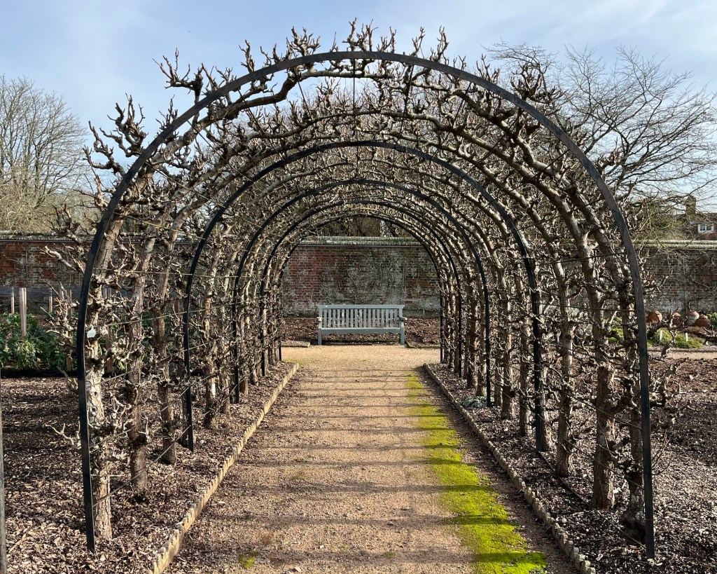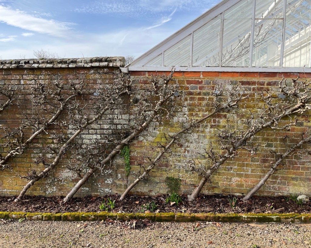The garden is laid out in three distinct walled sections; The Walled Fruit Garden, The Victorian Glasshouses and The Kitchen Garden. The trees pictured above are relatively young, not older than the post 1987 storm restoration project undertaken by the former head gardeners Jim Buckland and wife Sarah Wain (between 1991-2019).