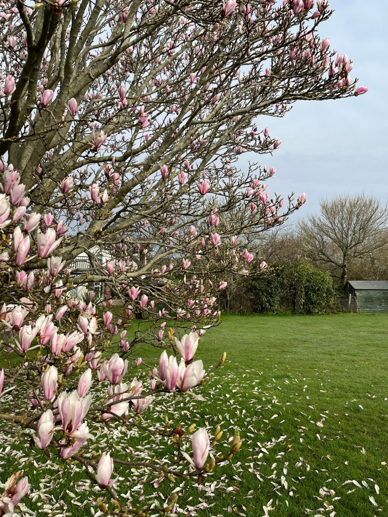 On a 5 minute journey recently I counted 14 front garden specimens in bloom, which to me confirms its status as the mostly commonly planted of the Magnolias here in the south east (UK). Magnolia x soulangeana is a hybrid magnolia brought into being in 1820 by French plantsman Étienne Soulange-Bodin (1774-1846). He crossed M. liliiflora of Chinese origin with M. denudata of Japanese origin (although actually also a Chinese native) and the rest is history, flowering each March to spectacular effect.