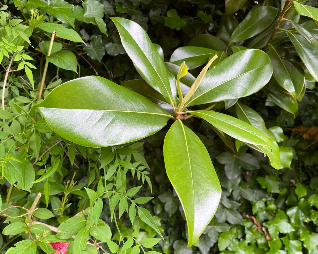 Evergreen and frequently seen, a stand alone specimen is nice but I appreciate it more when it is grown amongst other contrasting foliage. Magnificent as new leaves set in early summer.