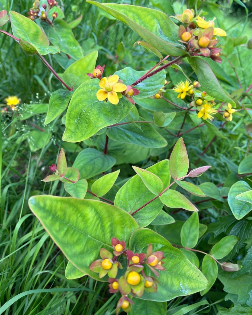 Mostly overlooked and frequently weeded out, Hypericum androsaemum is a good example of a plant that for most of the year is a bit drab, unremarkable even, but it has its moment in June with fresh stalkless leaf growth and the appearance of flowers branched in cymes. Native and widespread. Harmful if eaten. Good for native wildlife providing food for several larval stage moth species.